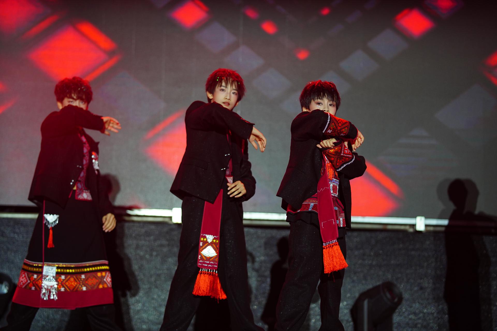 民族國潮音樂節(jié)是整場活動的高潮,三大篇章層層遞進,用音樂與舞臺藝術詮釋非遺文化的傳承脈絡。第一篇章“非遺・源” 以大型綜合歌舞劇為載體,原生態(tài)民歌的清亮旋律、壯族天琴彈唱的悠揚曲調、原生態(tài)民族舞蹈的靈動身姿,搭配身著壯錦盛裝的演員走秀——服飾上的 “萬字紋”“水波紋” 在燈光下熠熠生輝,仿佛將觀眾帶回民族文化誕生的源頭,沉浸式感受傳統(tǒng)文化的厚重。第二篇章 “非遺・承” 聚焦青春力量,南國少年團帶來量身打造的國潮表演:唱跳曲目融入壯族元素的歡快旋律,說唱歌詞講述非遺傳承的當代故事,年輕演員們充滿活力的演繹,展現(xiàn)出青少年對民族文化的創(chuàng)新理解,讓傳統(tǒng)與青春碰撞出別樣火花。第三篇章“非遺・燃” 邀請無限活力組合等廣西本土知名歌手與音樂組合登臺,他們將壯族山歌的高亢曲調與現(xiàn)代電子音樂的強烈節(jié)奏相結合,傳統(tǒng)歌詞經潮流編曲后,既保留民族韻味,又充滿時尚感,熟悉的旋律瞬間點燃現(xiàn)場,臺下觀眾跟著節(jié)奏揮舞手臂,形成熱烈的互動氛圍。