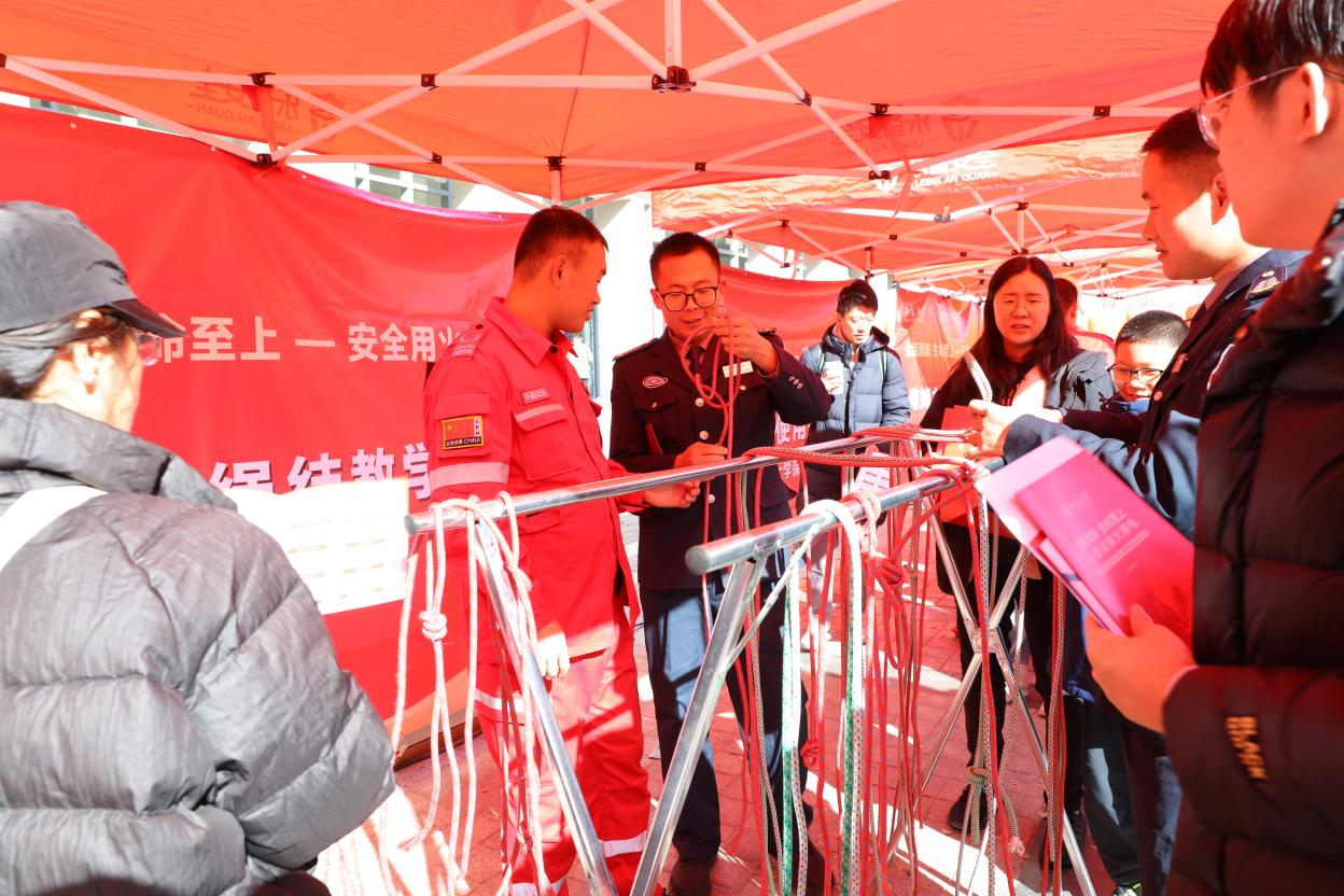 活動(dòng)現(xiàn)場共設(shè)置了包括消防知識答題、模擬煙霧逃生、消防隱患VR排查、滅火毯與滅火器使用教學(xué)、救援繩結(jié)教學(xué)、AED操作培訓(xùn)、模擬電瓶車起火演示、廚房油鍋起火撲滅系統(tǒng)體驗(yàn)、燃?xì)馀c粉塵爆炸演示、模擬觸電體驗(yàn)以及實(shí)驗(yàn)室安全宣傳等在內(nèi)的16個(gè)項(xiàng)目體驗(yàn)區(qū)。大家借助消防VR互動(dòng)體驗(yàn)、模擬煙霧逃生等沉浸式項(xiàng)目,學(xué)習(xí)滅火器的規(guī)范操作,掌握火場逃生技巧,并熟練運(yùn)用AED等急救技能。各體驗(yàn)區(qū)高度還原真實(shí)火災(zāi)場景與突發(fā)緊急狀況,為參與者營造身臨其境的學(xué)習(xí)環(huán)境,助力師生有效掌握消防安全知識與應(yīng)對技能。