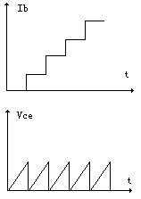 如下圖所示,晶體管特征圖示儀提供Vce的鋸齒波掃描電壓和Ib的階梯變化,且兩者一一對(duì)應(yīng),便產(chǎn)生Ib從Ib0、Ib1、Ib2等Vce從零到最大值的曲線族。從而測(cè)量晶體管的直流特性。