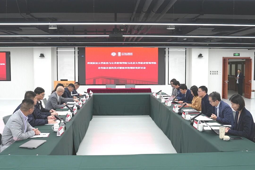 燕繼榮肯定了雙方老師的學(xué)術(shù)發(fā)言和學(xué)術(shù)觀點(diǎn),并指出,西南政法大學(xué)根植成渝地區(qū),學(xué)院教師深入相關(guān)實(shí)踐,具有突出的城市治理問(wèn)題意識(shí),雙方可以在學(xué)術(shù)研討、社會(huì)服務(wù)、科學(xué)研究、人才培養(yǎng)等領(lǐng)域深入合作,包括聯(lián)合舉辦高端學(xué)術(shù)論壇、聯(lián)合組織地方領(lǐng)導(dǎo)干部城市治理高端培訓(xùn)項(xiàng)目,以及在常規(guī)著述成果之外,探索政策方案、模型、標(biāo)準(zhǔn)等更為多元的學(xué)術(shù)成果形態(tài),以豐富形式將合作協(xié)議落到實(shí)處。此次合作不僅深化了兩院的既有聯(lián)系,更回應(yīng)了國(guó)家城市治理現(xiàn)代化的迫切需要。雙方將充分發(fā)揮各自在理論研究與實(shí)踐創(chuàng)新方面的優(yōu)勢(shì),共同打造城市治理研究學(xué)術(shù)高地,為推進(jìn)國(guó)家治理體系和治理能力現(xiàn)代化貢獻(xiàn)智慧與力量。